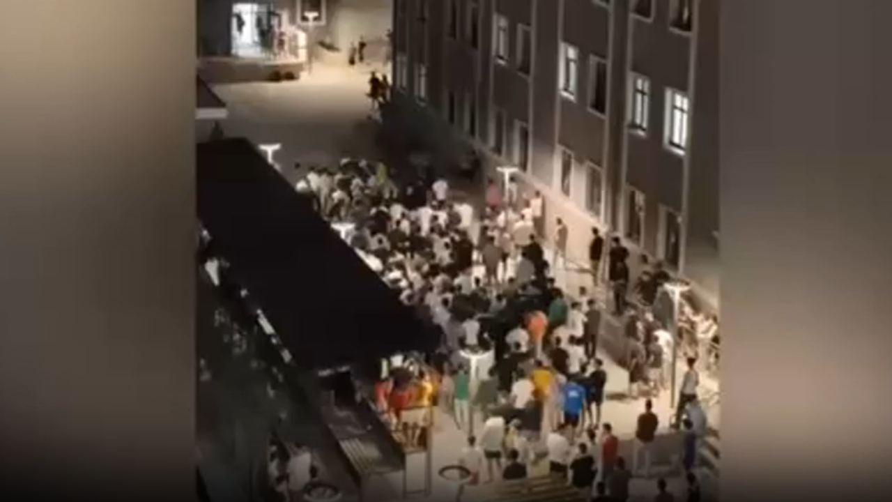 Yurt önüne çıkan öğrenciler, alkış ve sloganlarla yurt yönetimine tepkilerini dile getirdi.
