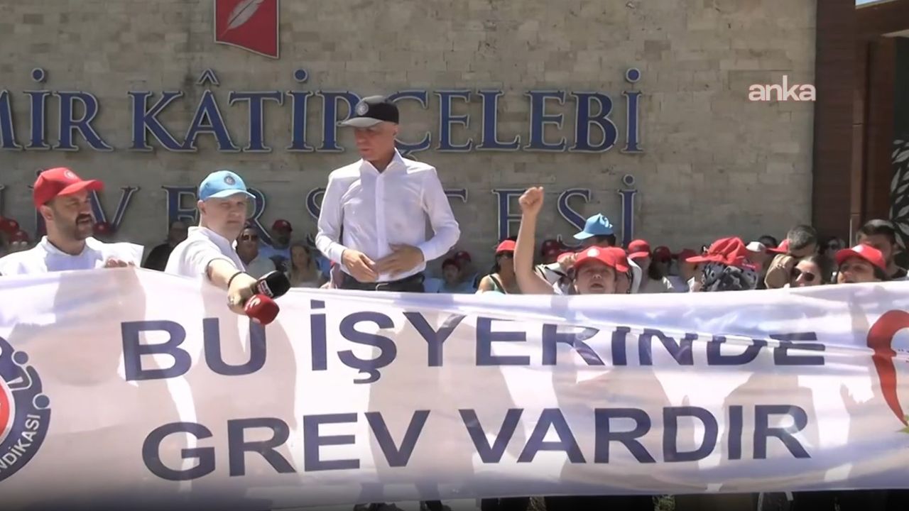 Açıklamayı Öz Büro İş Sendikası Genel Başkanı Baki Gülbaba yaptı. Gülbaba, “Sabrımızın, direncimizin, umudumuzun, haklılığımızın bugüne kadar anlaşılmamış olması nedeniyle, bugün kamu da ilk grevi İzmir Katip Çelebi Üniversitesi'nde başlatıyoruz. Bu grev, hak grevidir. Bu grev, masum bir grevidir. Bu grev, geçinemeyen insanların isyanının adıdır. Bu grev, emeğin direncidir” diye konuştu.