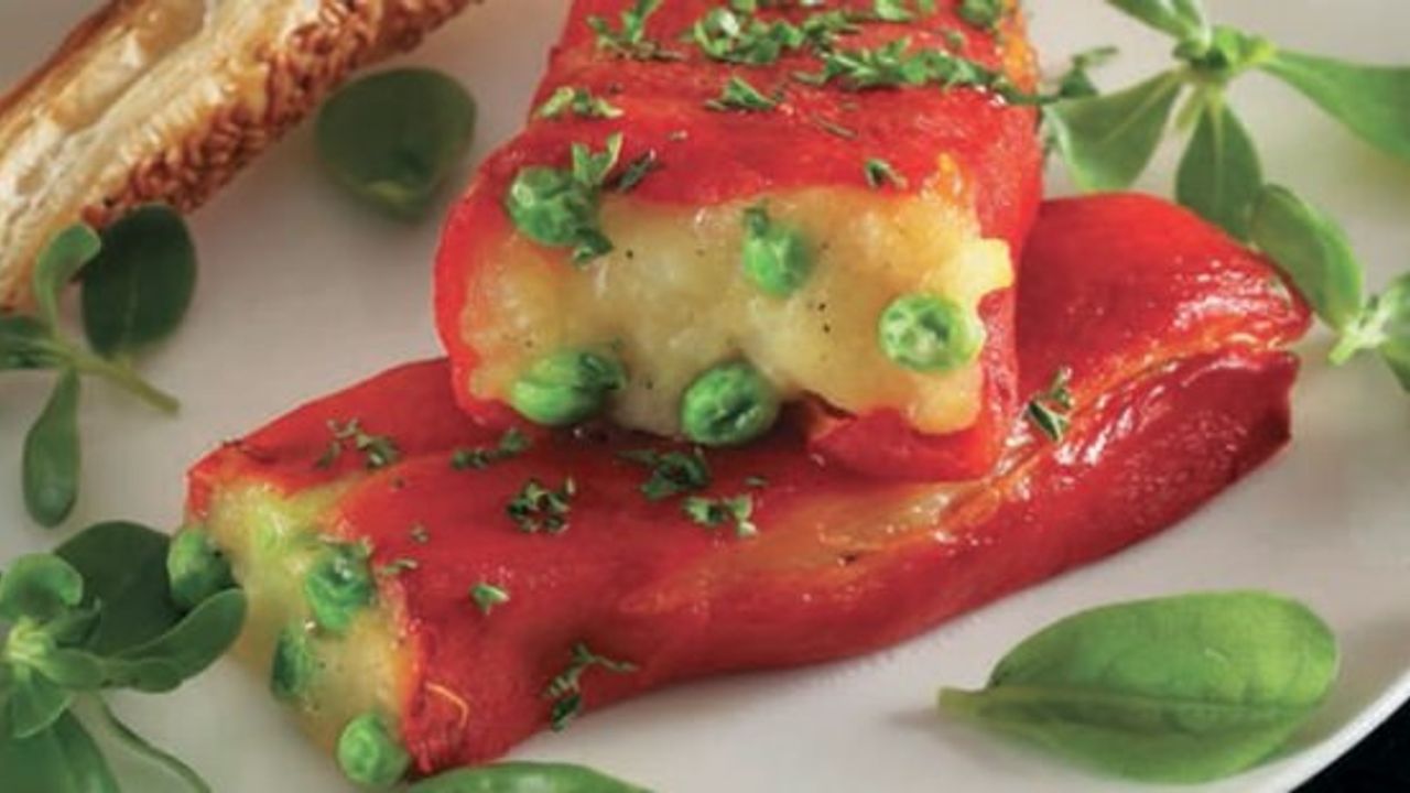 Patates püresini biberlerin içlerine paylaştırın ve rulo sarın.