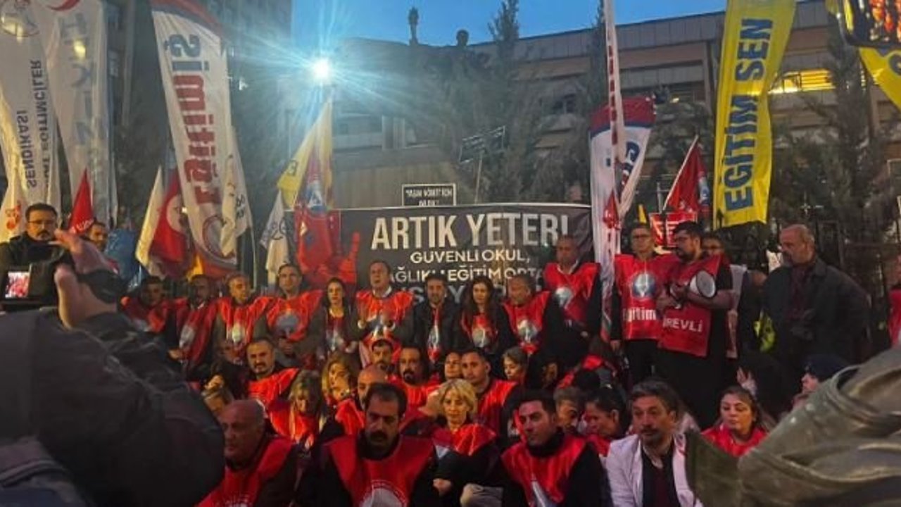 Eğitim sendikaları, Kahramanmaraş ve Şanlıurfa'da okullara düzenen silahlı saldırıları Milli Eğitim Bakanlığı önünde nöbete başladı. "Yaşam nöbeti için geldik" diyen öğretmenler, "Tarikatçı Bakan Yusuf Tekin istifa", "Susma haykır şiddete hayır", "Öğrenciler ölüyor bakan izliyor" ve "Eğitimde şiddet politiktir" sloganları attı.