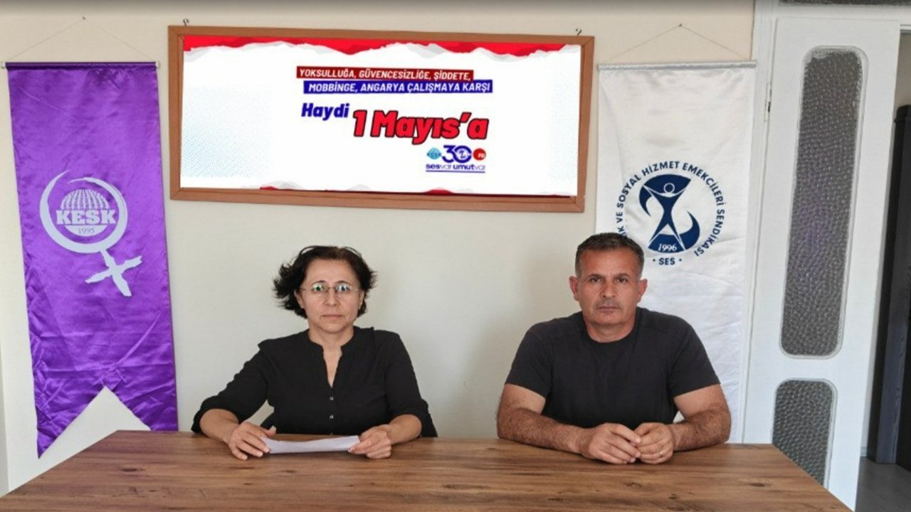 Sağlık ve Sosyal Hizmet Emekçileri Sendikası (SES) Antalya Şubesi, 1 Mayıs öncesi şube binasında basın açıklaması gerçekleştirdi. Açıklamayı SES Antalya Şubesi Eş Başkanı Şükran İçöz okudu. İçöz, sağlık ve sosyal hizmet emekçilerini 1 Mayıs’ta alanlarda buluşmaya çağırarak, “Yoksulluğa, güvencesizliğe, şiddete, mobbinge ve angarya çalışmaya karşı haydi 1 Mayıs’a” dedi.