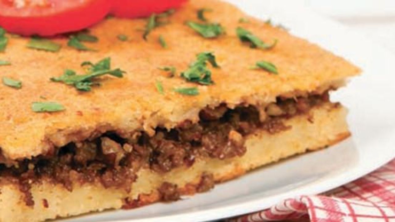 Malzemeler:1.5 su bardağı ince bulgur1.5 çay bardağı un1 yumurta250 gr kıyma1 soğan1 çay bardağı ceviz içiTuzKarabiberKırmızı pul biberHazırlanışı:Bulguru geniş bir kaba alın.Üzerini geçecek kadar sıcak su ekleyip 20 dakika bekletin.Unu azar azar ilave edip karıştırın.Yumurta ve tuzu ekleyip elinizi arada ıslatarak yoğurun.Soğanı küçük doğrayıp kıymaya ekleyerek kavurun.Tuz, karabiber ve kırmızı pul biberi ekleyin.Cevizi küçük parçalara bölüp kıymaya ilave edin.Bulgur hamurunun yarısını yağladığınız fırın kabına yayın.Üzerine kıymalı harcı yerleştirin.Bulgur hamurunun diğer yarısını üzerine bastırarak yayın.Üzerine fırça ile ayçiçeği yağı sürün.180 dereceye ayarlı fırında üzeri kızarıncaya kadar pişirin.İnce kıyılmış maydanoz ve kiraz domatesle süsleyerek servis yapın.Afiyet olsun!