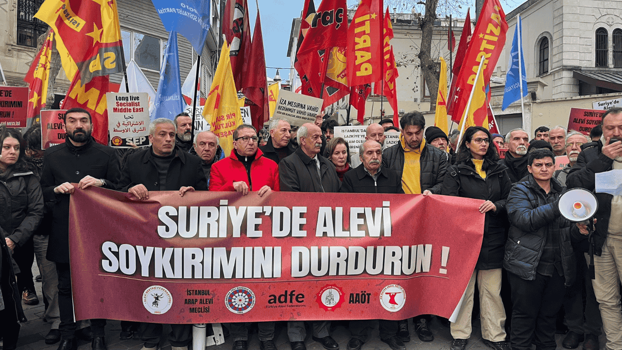 Suriye'nin batısında Alevilere yönelik saldırılar, Kadıköy'de protesto edildi. Yapılan açıklamada “Emperyalist devletler ve işbirlikçi bölge güçleri tarafından ‘Yeni Suriye’ söylemleriyle pazarlanan HTŞ dönemi bir yılı geride bıraktı. Ancak ortaya çıkan tablo son derece nettir: El birliğiyle istikrarsız, kaotik ve geleceği belirsiz bir Suriye inşa edilmiştir. İktidara getirilen HTŞ yönetimi, halka katliam ve tehdit dışında hiçbir şey sunmamış, tüm dünyanın gözü önünde büyük suçlara imza atmıştır” denildi.