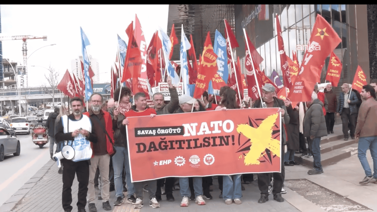 Türkiye İşçi Partisi (TİP), Emek Partisi (EMEP), Emekçi Hareket Partisi (EHP) ve KESK Ankara Şubeler Platformu, NATO’nun 77’nci kuruluş yıl dönümünde “NATO dağıtılsın” talebiyle ABD’nin Ankara Büyükelçiliği’ne yürüdü.