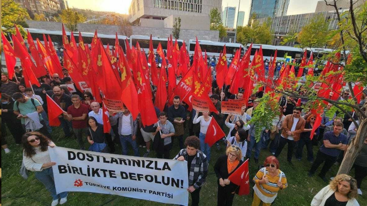 Türkiye Komünist Partisi (TKP) üyeleri, Cumhurbaşkanı Recep Tayyip Erdoğan ile ABD Başkanı Donald Trump arasında gerçekleşen görüşmeyi protesto etmek için ABD’nin Ankara Büyükelçiliği önünde eylem düzenledi.