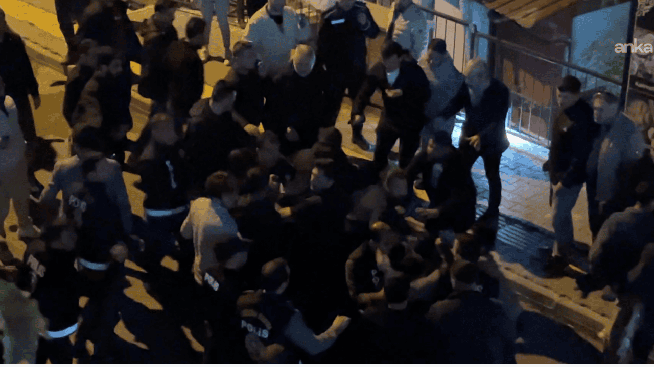 Kavga anı ve polisin müdahalesi, çevredekilerin cep telefonu kamerasına yansıdı.