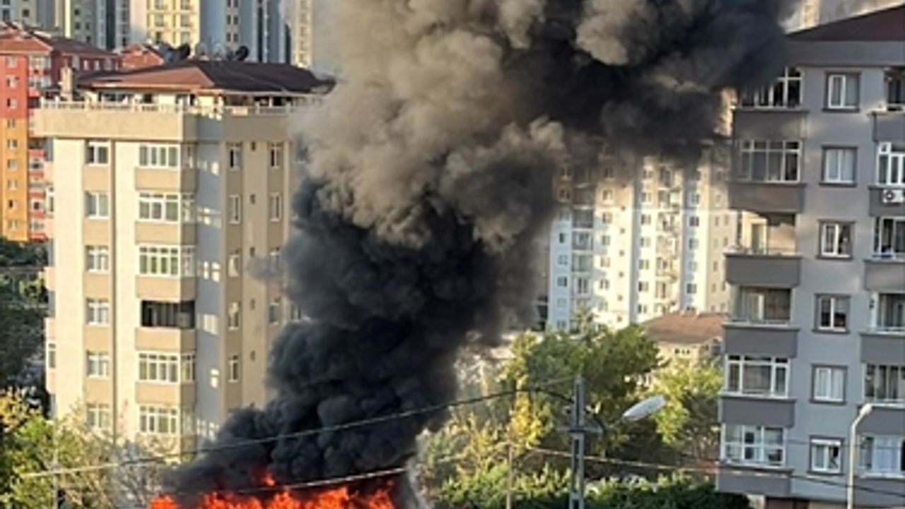 Ümraniye'de yolcuların bulunduğu İETT otobüsü, seyir halindeyken yanarak kullanılamaz hale geldi.