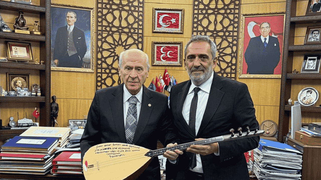 Yavuz Bingöl, Milliyetçi Hareket Partisi (MHP) Genel Merkezi’nde Genel Başkan Devlet Bahçeli’yi makamında ziyaret etti. Bingöl, ziyaret sırasında Bahçeli’ye bağlamayla "Çeke Çeke" deyişini çalıp söyledi.